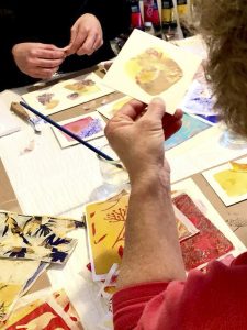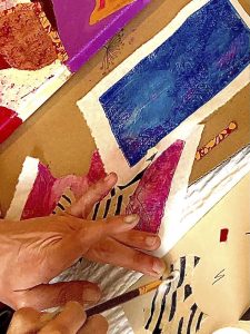 Accessible à tous, même sans expérience artistique, chaque atelier vous permet de repartir avec votre œuvre unique : un collage de papiers encrés, reflet de votre sensibilité.